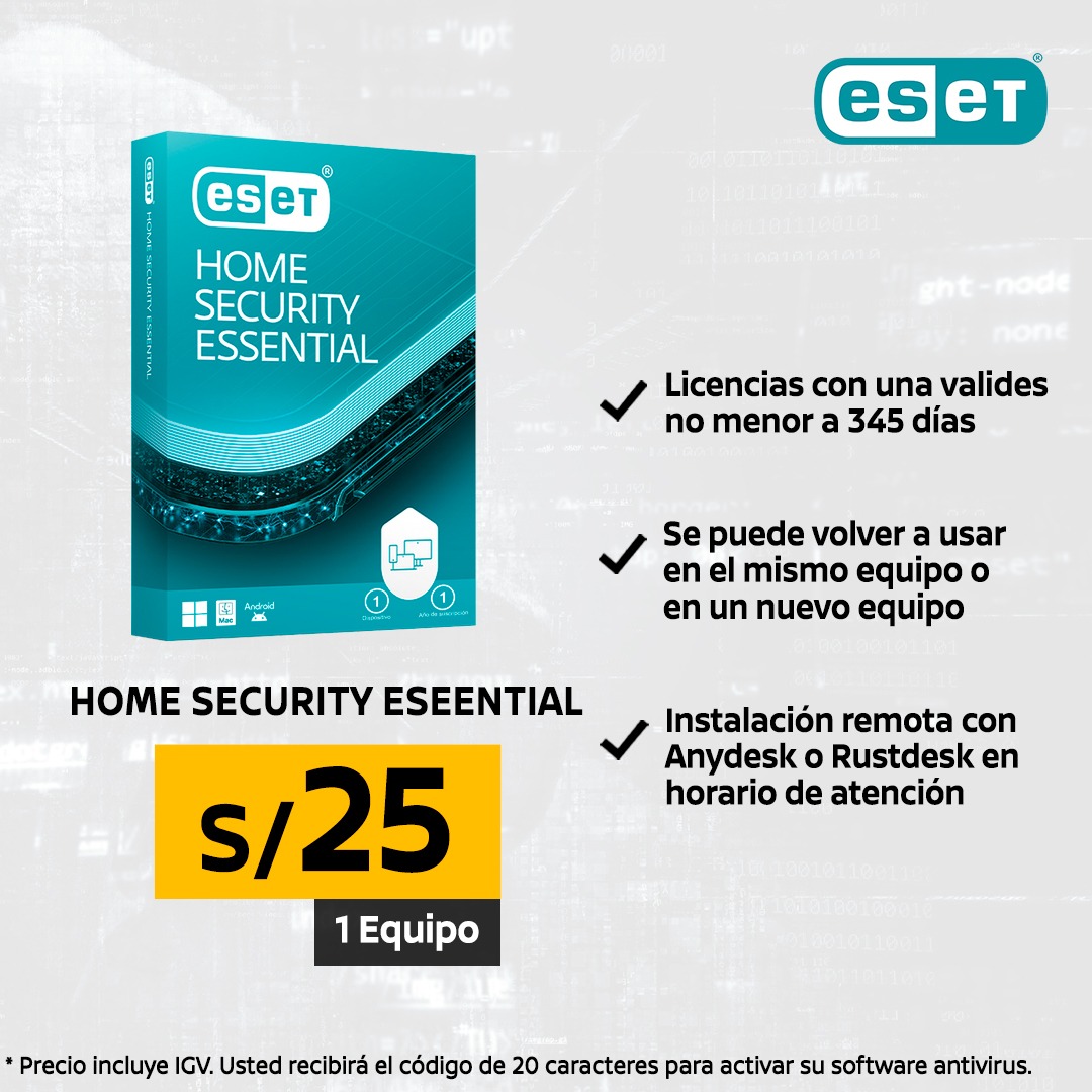 - La licencia la puede agregar a su cuenta ESET HOME desde el software antivirus