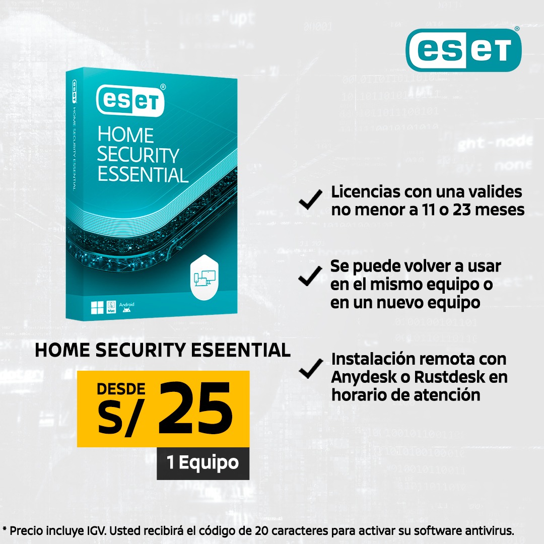 ESET Home Security Essential [Digital] | Licencias Registradas Rango de precios: S/25.00 hasta S/48.00 Incluye IGV