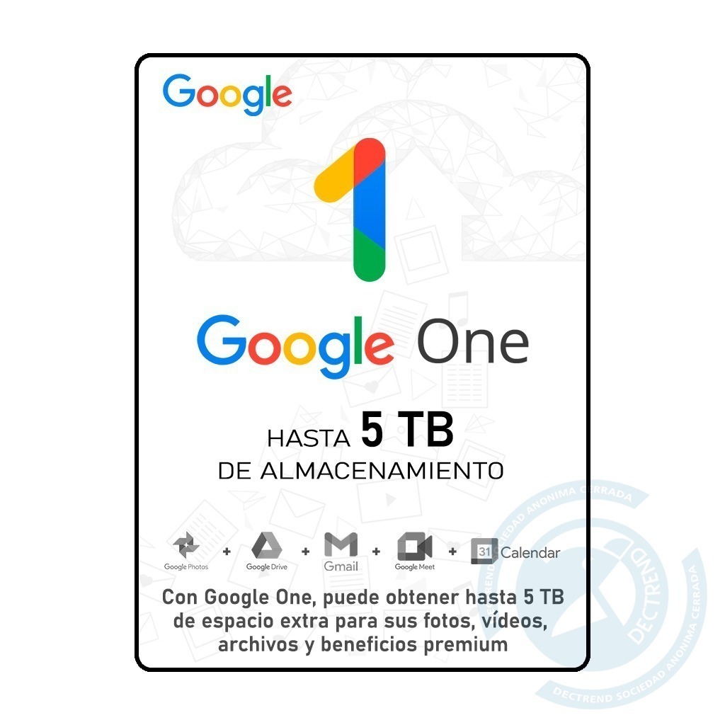 - Almacenamiento extra de hasta 5 TB en las aplicaciones de Google: Fotos, Drive y Gmail